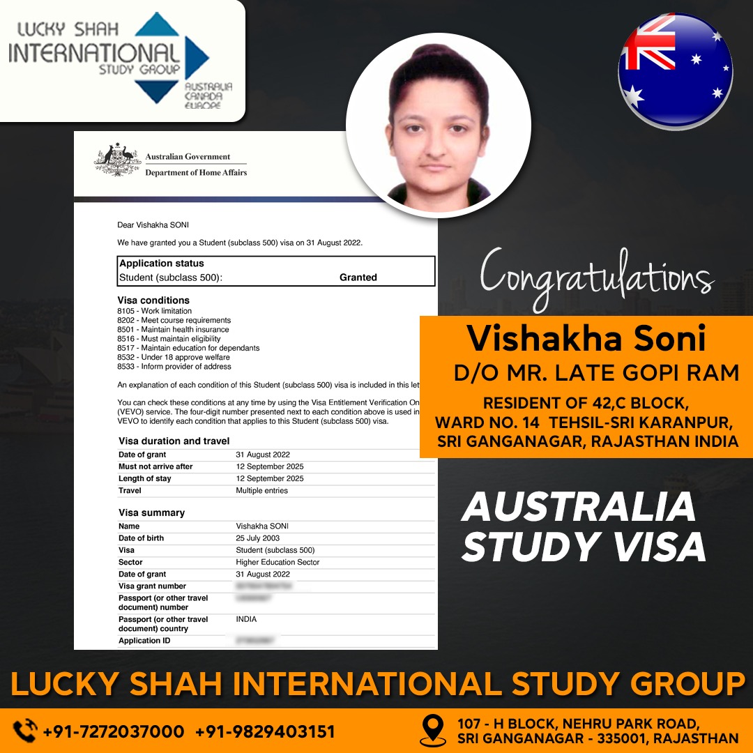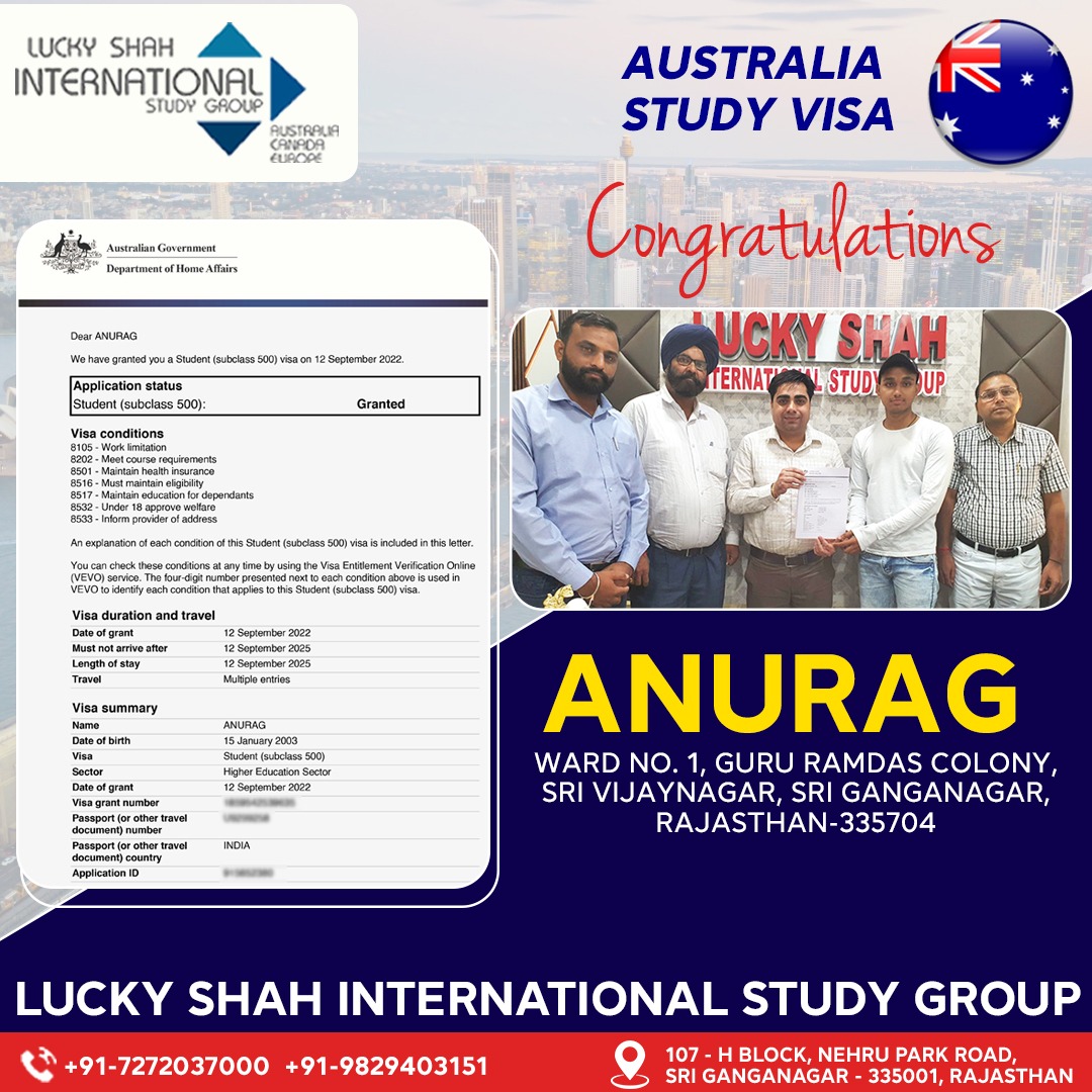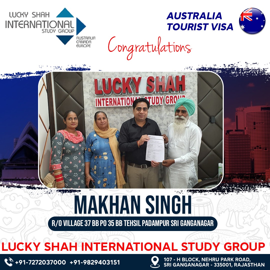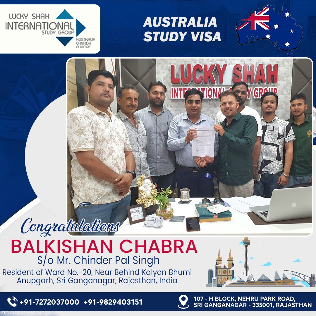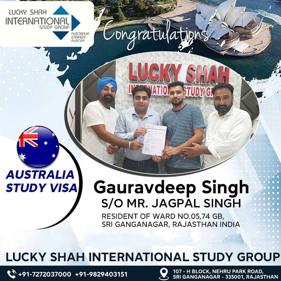 Lucky Shah International Study Group set up in 2015, with its first office in Sri Ganganagar. Established as a pioneer and devoted visa organization in Sri Ganganagar, throughout the years developed and perceived as best visa office in Ganganagar for all the movement administrations. Presently we are a standout amongst the best visa help specialist organizations in Sri Ganganagar. We have sent many students to different renowned education institutions in the world to accomplish their study abroad dream and secure their future by acquiring international degrees. Moreover, we have expertise in major countries, including the UK, Canada, Australia, New Zealand, Ireland, Singapore, Dubai, Malaysia and many more.