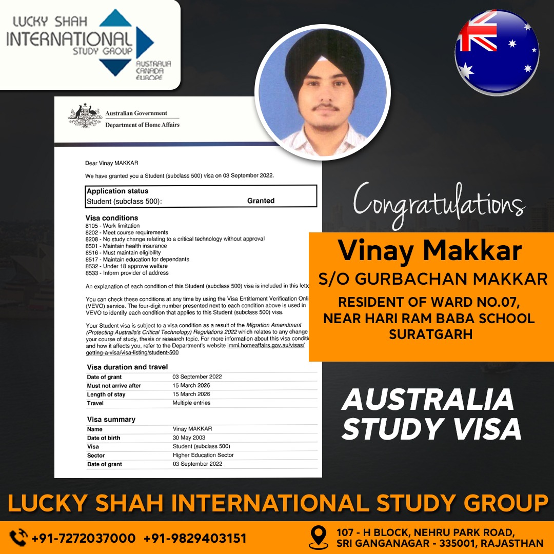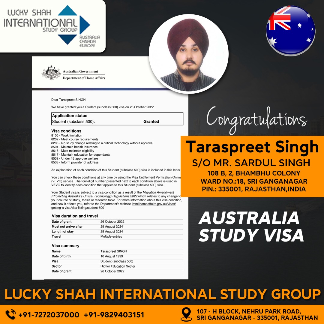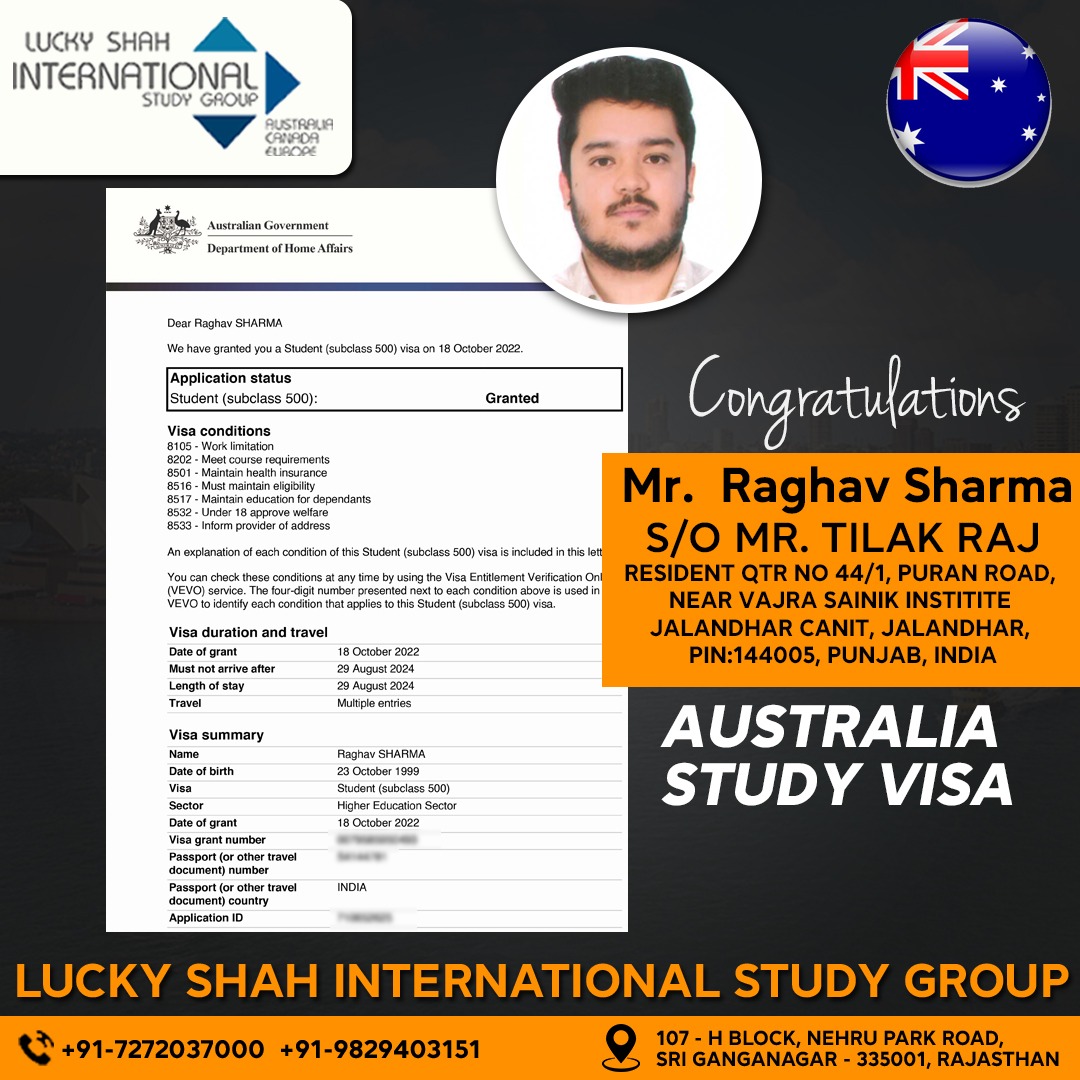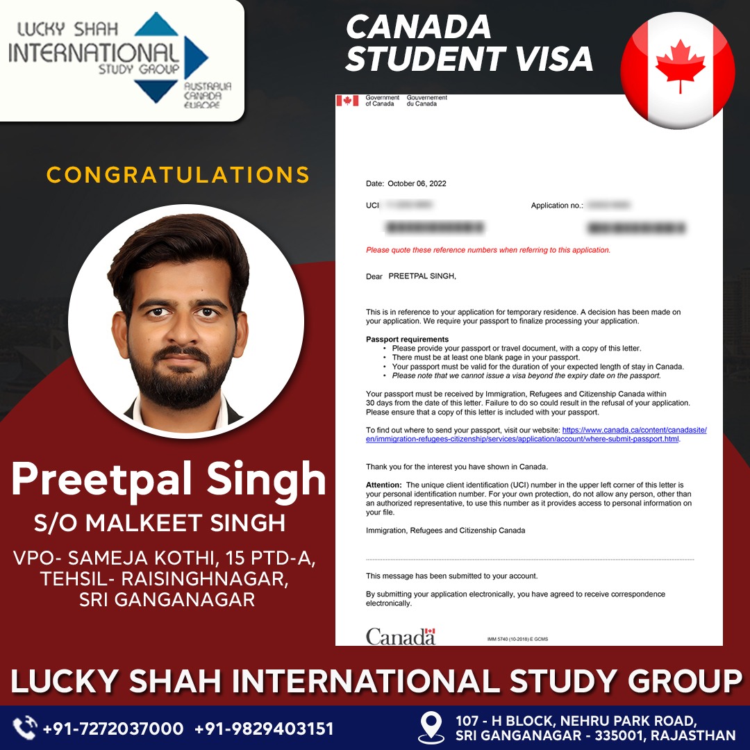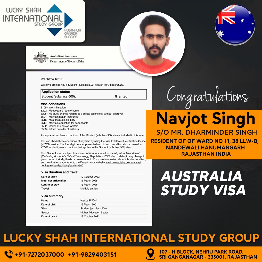 Lucky Shah International Study Group set up in 2015, with its first office in Sri Ganganagar. Established as a pioneer and devoted visa organization in Sri Ganganagar, throughout the years developed and perceived as best visa office in Ganganagar for all the movement administrations. Presently we are a standout amongst the best visa help specialist organizations in Sri Ganganagar. We have sent many students to different renowned education institutions in the world to accomplish their study abroad dream and secure their future by acquiring international degrees. Moreover, we have expertise in major countries, including the UK, Canada, Australia, New Zealand, Ireland, Singapore, Dubai, Malaysia and many more.